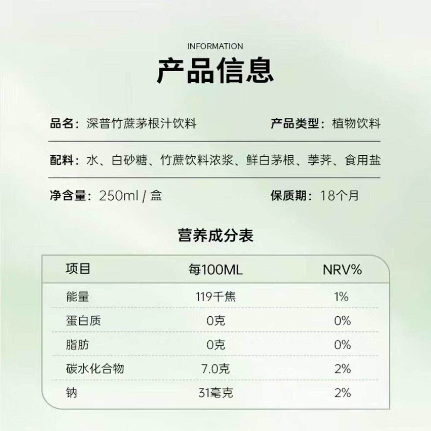 深普竹蔗茅根汁250ml |