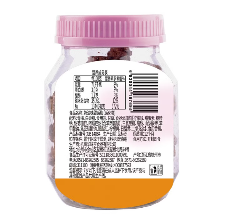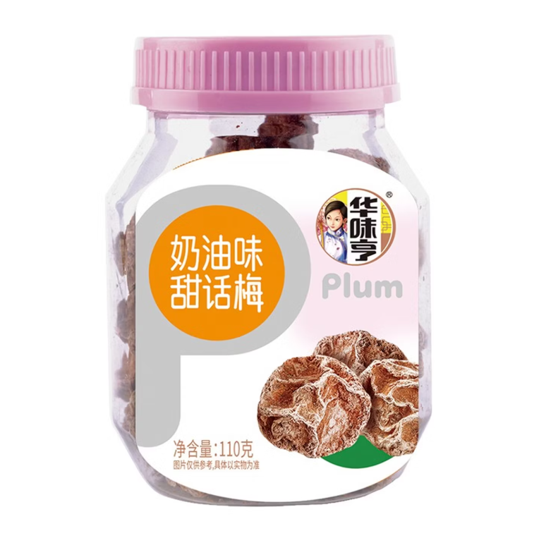 华味亨奶油味甜话梅110g/罐 |