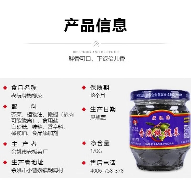 老阮牌正宗香港橄榄菜170g三瓶装 |