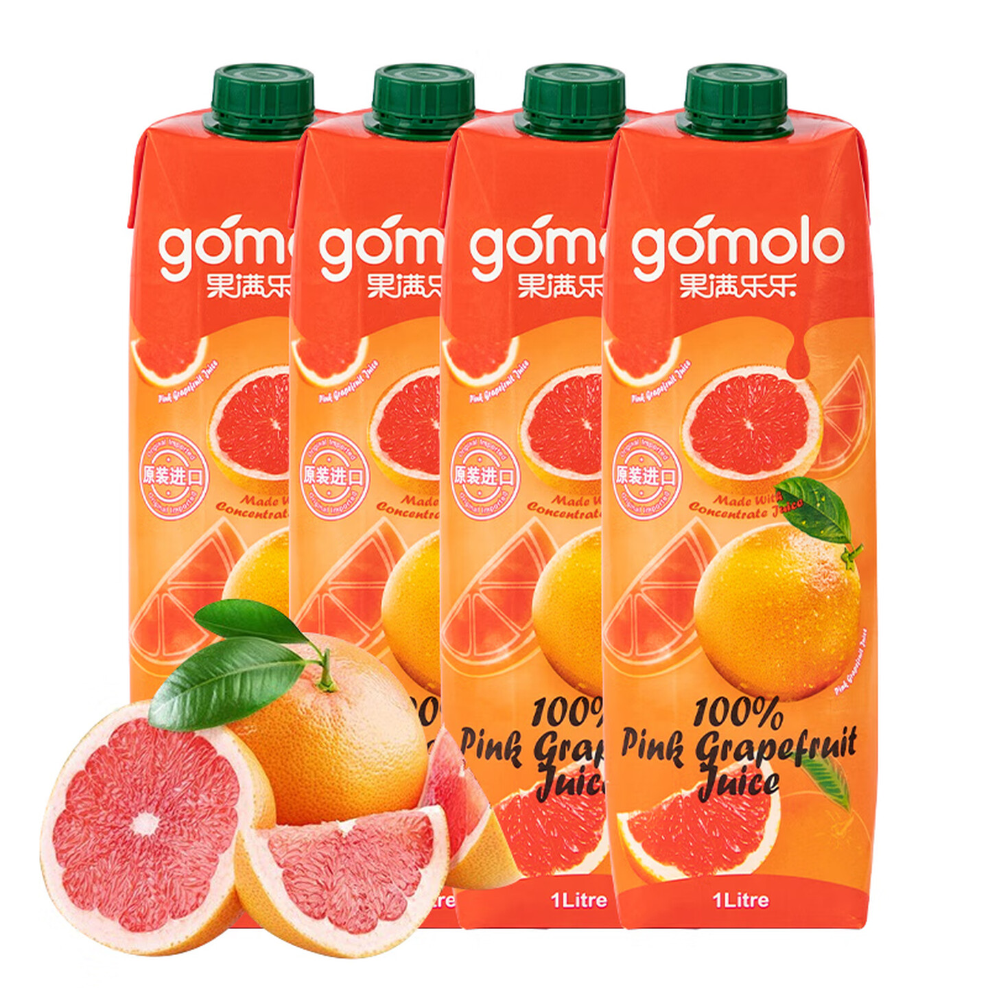 果满乐乐塞浦路斯进口红心西柚汁大瓶装100%纯果汁1L |