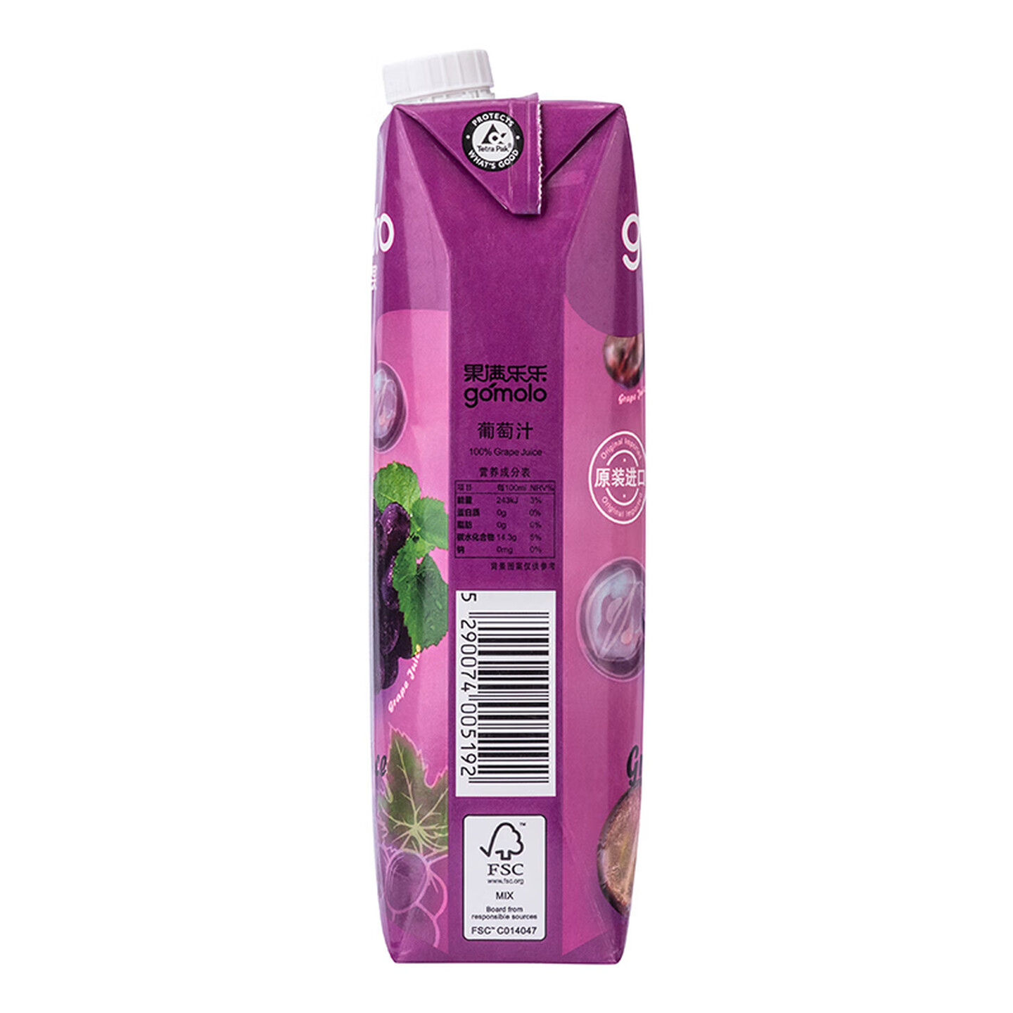 果满乐乐塞浦路斯进口葡萄汁大瓶装100%纯果汁1L |