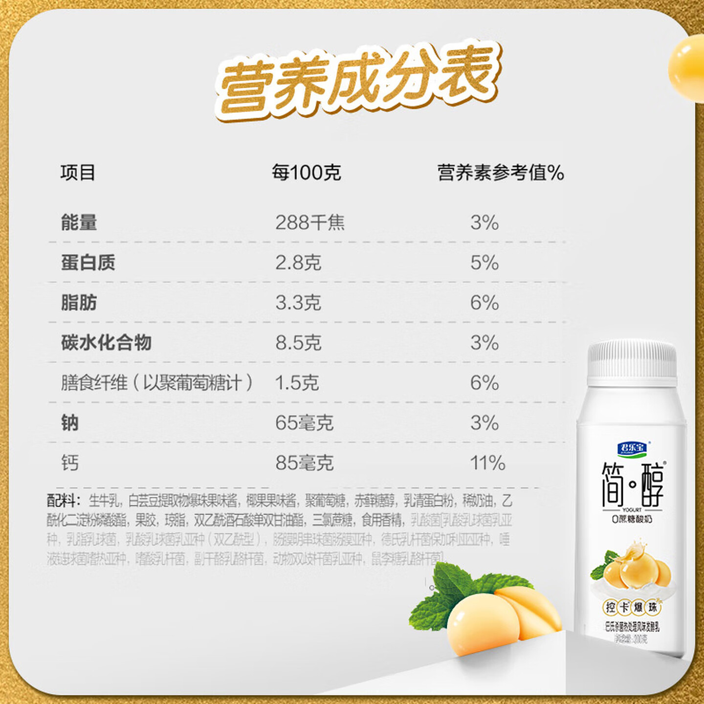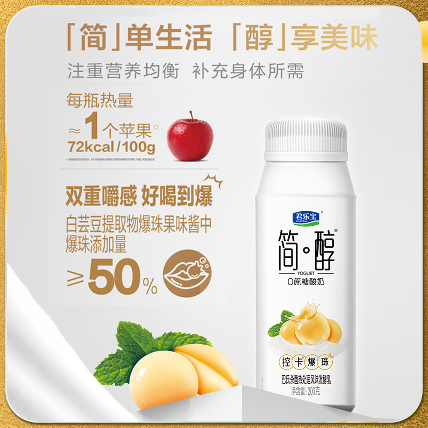 君乐宝简醇0蔗糖酸奶控卡爆珠风味发酵乳200g*10瓶 常温酸奶 |