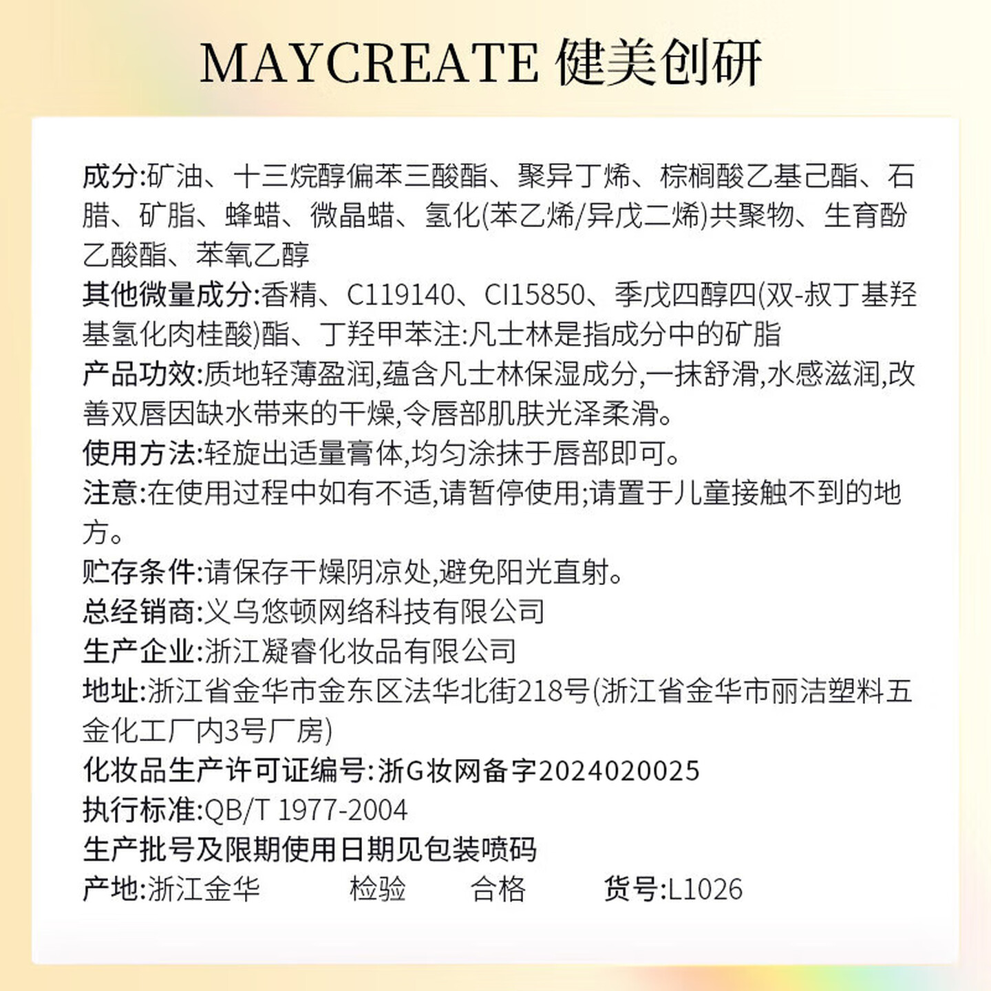 健美创研维生素原B5润唇膏3g |