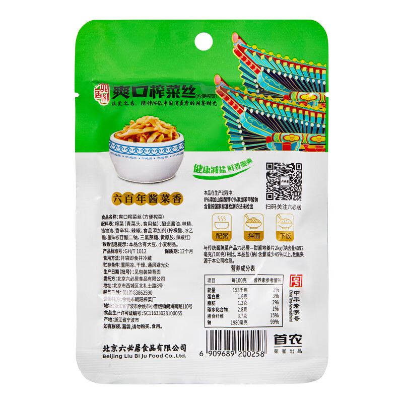 六必居爽口榨菜丝 70g*5袋 |