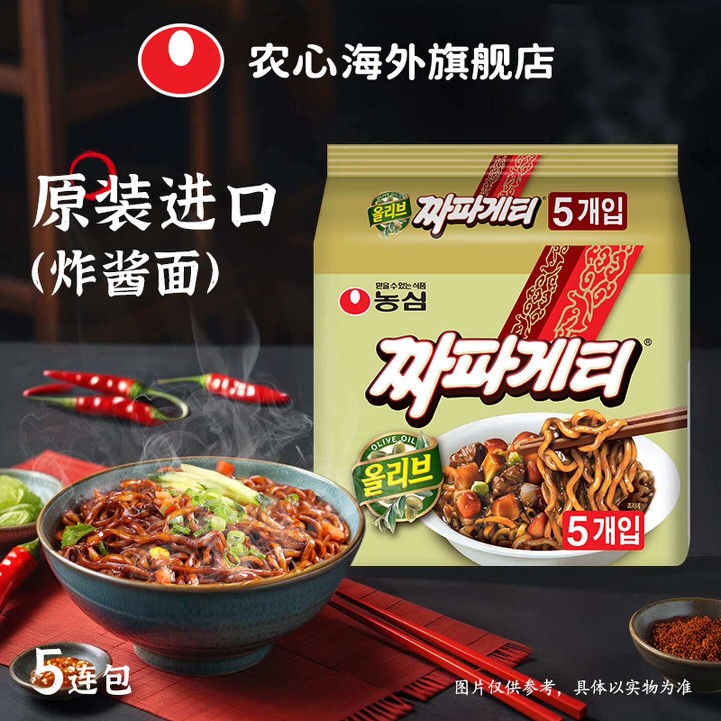 农心韩国进口炸酱面韩式甜辣拌面炸酱面140g*5连包 |