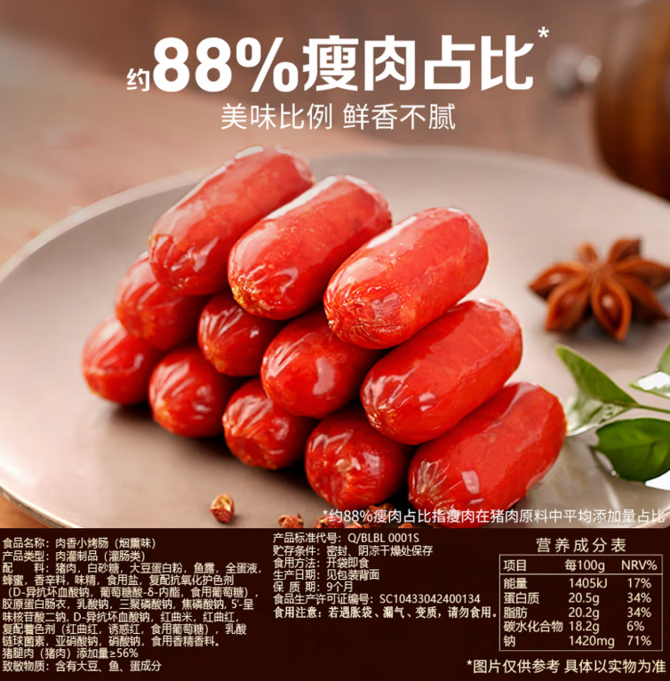 百草味肉香小烤肠烟熏味60g 香肠火腿肠 |