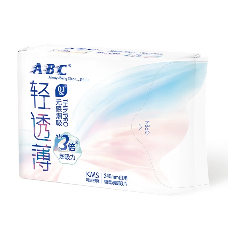 ABC超薄无感日用卫生巾240mm*8片 |