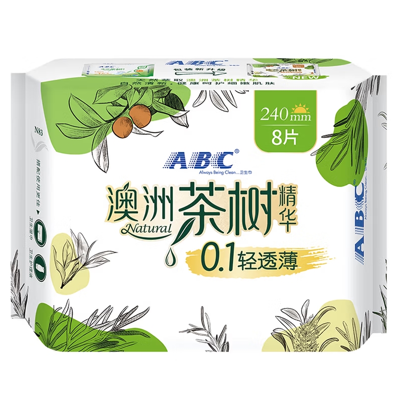 ABC澳洲茶树精华超薄透气日用卫生巾240mm*8片 |