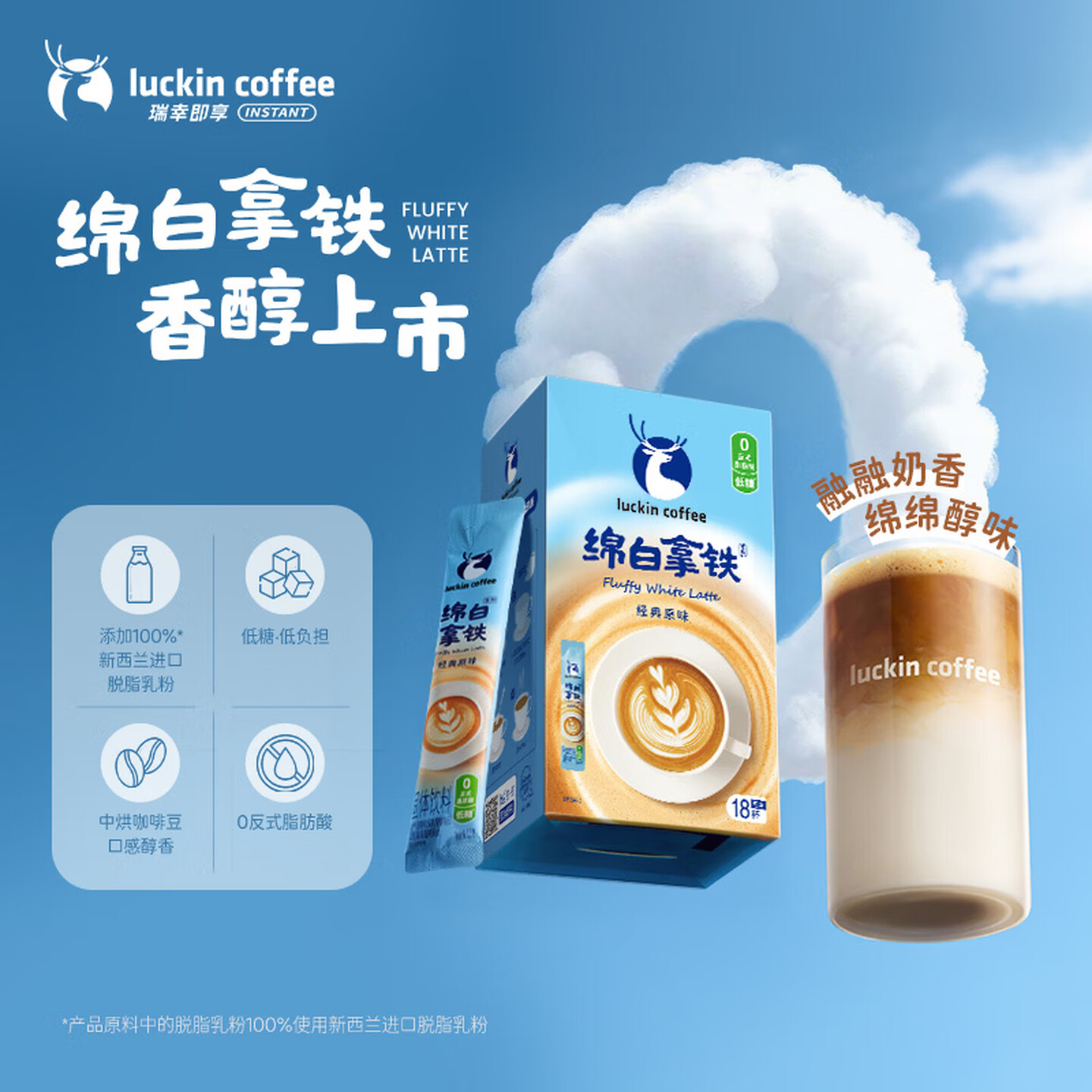 瑞幸咖啡低糖速溶咖啡三合一 绵白拿铁经典原味15g*18条 |