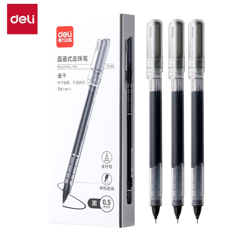 得力全针管中性笔【升级款】0.5mm黑5支 |