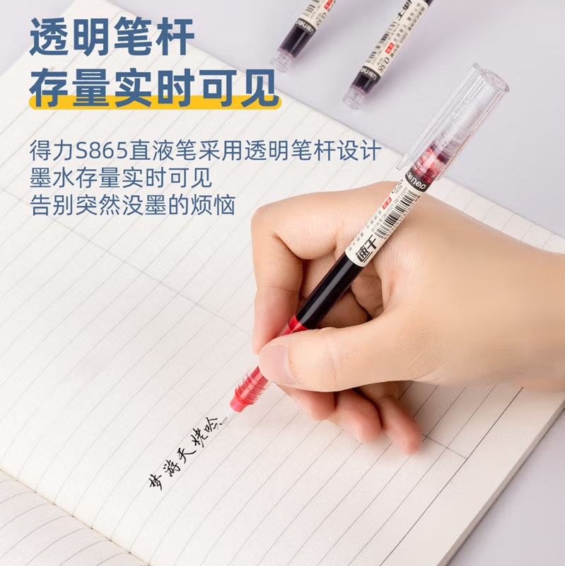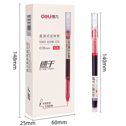 得力全针管中性笔0.38红12支 |