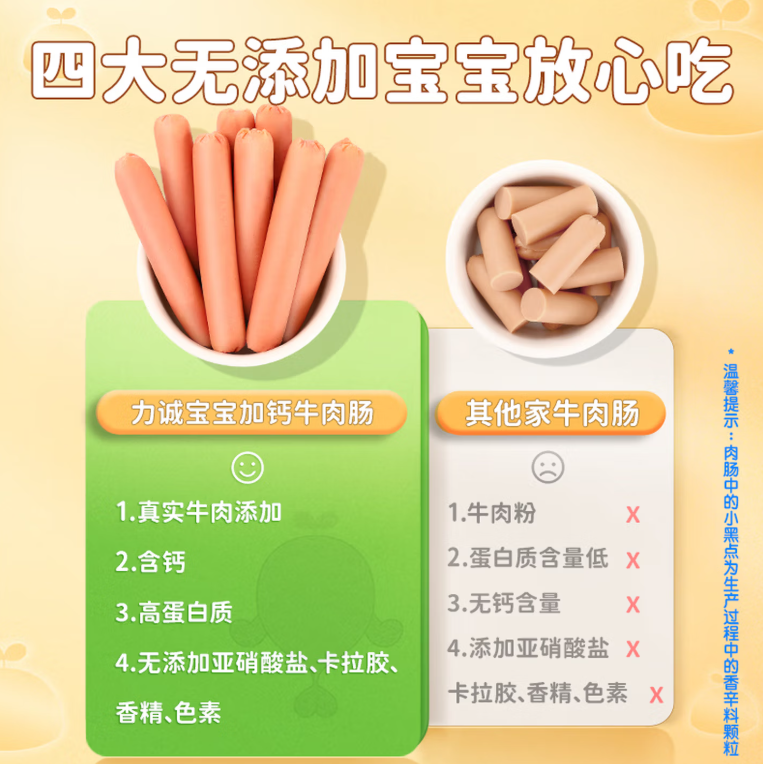 力诚宝宝 加钙牛肉风味肠原味 儿童肠宝宝零食火腿肠 60g尝鲜装(4支装) |