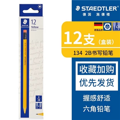 施德楼六角杆2B铅笔(带橡皮头)12支 |