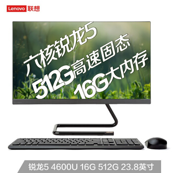 联想(Lenovo)AIO520C 微边框一体台式机电脑23.8英寸(RYZEN锐龙5-4600U 16G 512G SSD 无线键鼠)黑 |