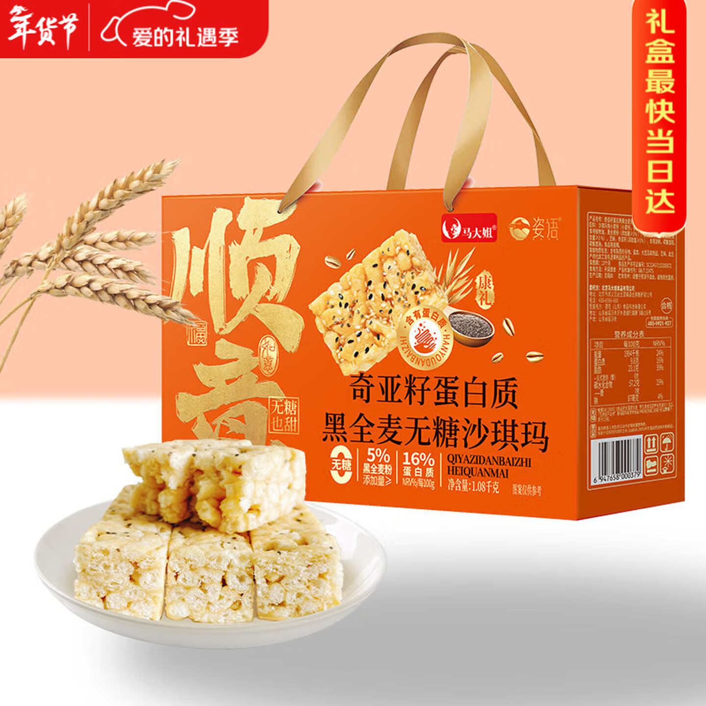马大姐无糖沙琪玛礼盒1.08kg 酥饼 |