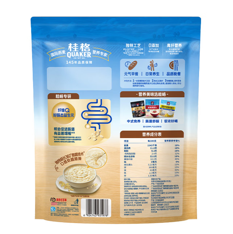 桂格(QUAKER)蒸糯即食糯燕麦片600克 |