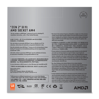 AMD 锐龙7 3800XT 高性能版处理器 (r7)7nm 8核16线程 3.9GHz 105W AM4接口 盒装CPU |