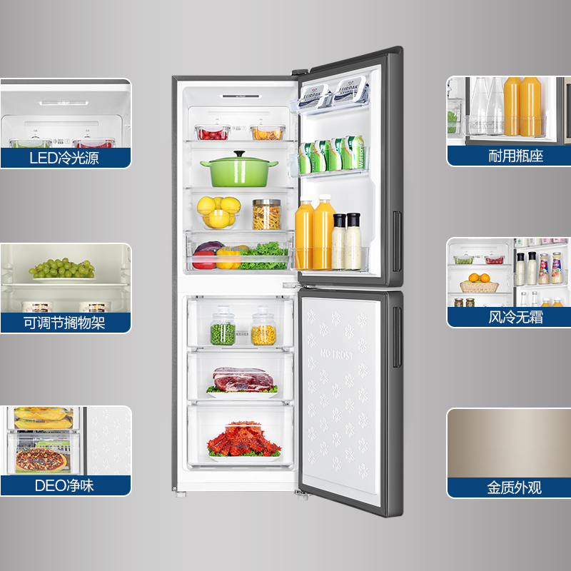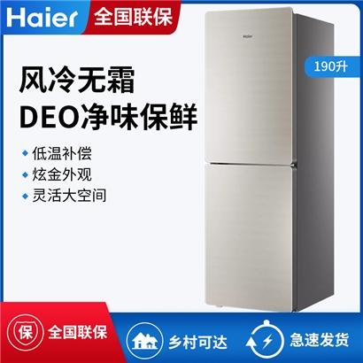 海尔BCD-190WDCO两双门彩晶玻璃无霜家用节能电冰箱【彩晶面板/ 轻奢金】 |