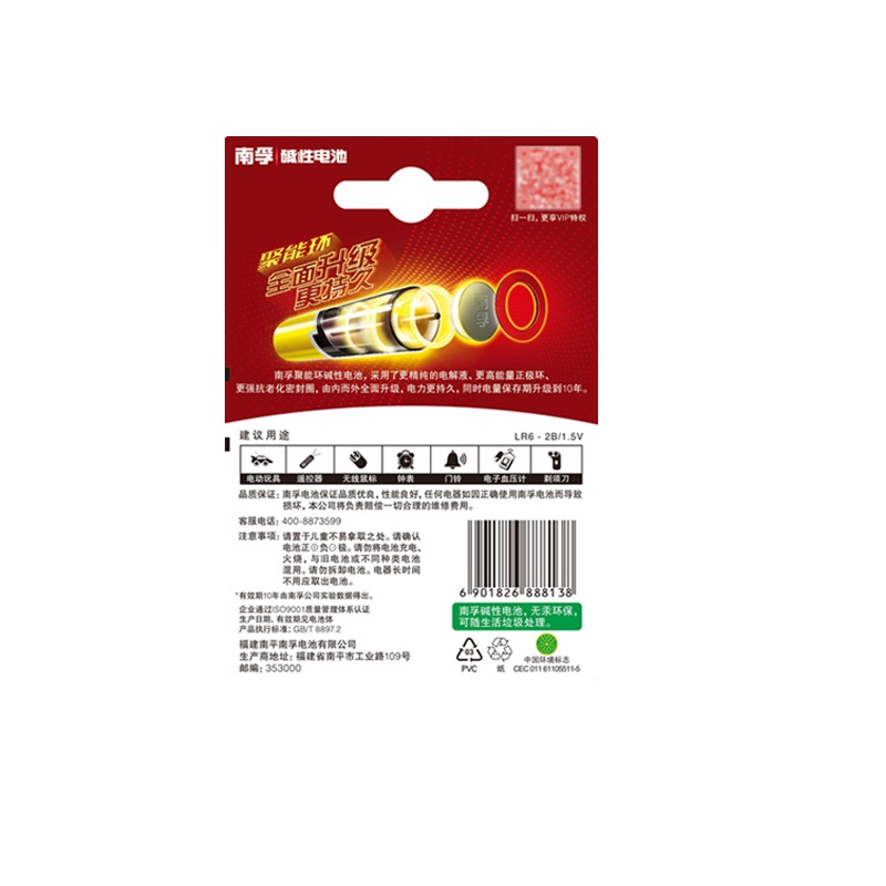南孚 LR06 碱性电池 5号 1.5V 2节/卡 |